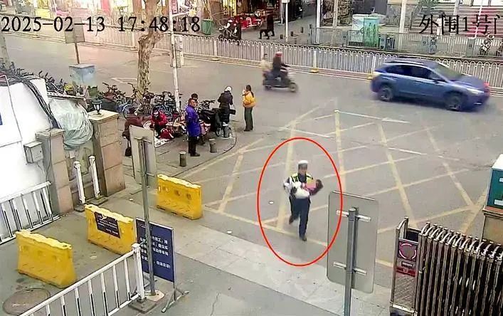 抱着小孩奔跑的辅警韩靖