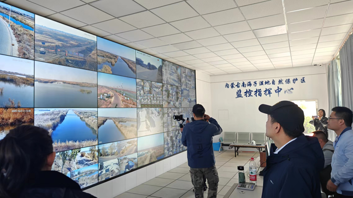 10月21日,“文明中国”主题采访报道组走进南海湿地自然保护区监控指挥中心,了解湿地监控、保护情况。新华网 庞博 摄