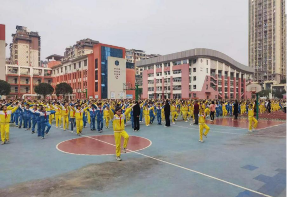 “高唱国歌行队礼,爱国主义记心里,上课铃响进教室,学习用品准备好……”11月3日上午10时许,在达州市通川区七小新锦学校操场,6年级1班的吴雨萱和学校3000余名学生排着整齐的队伍,伴着欢快的乐曲做起了课间操。在吴雨萱的记忆中,从一年级起,全校师生都要参与这样的文明礼仪操。