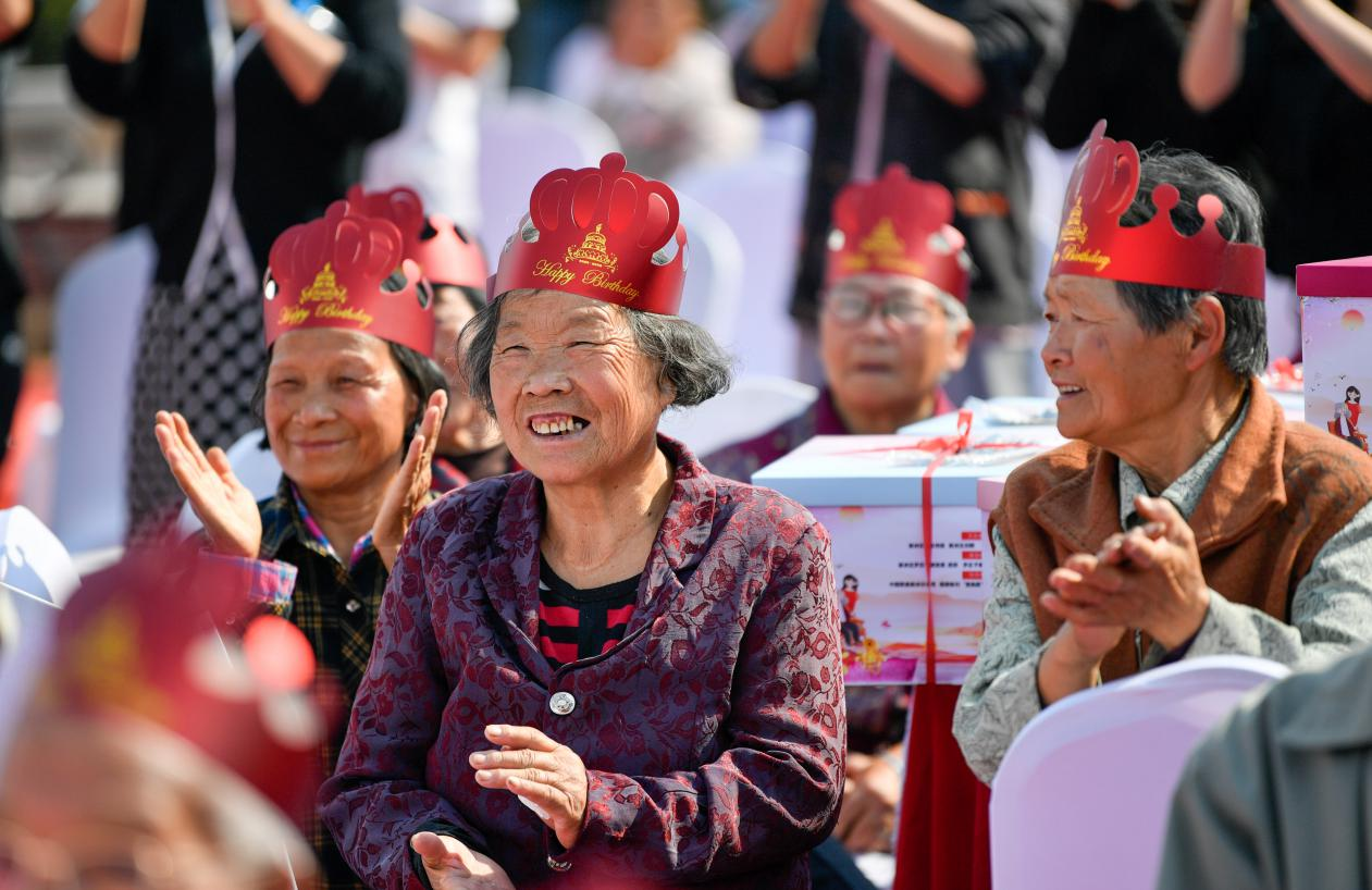 杨家峪村为长者举办集体庆生活动。