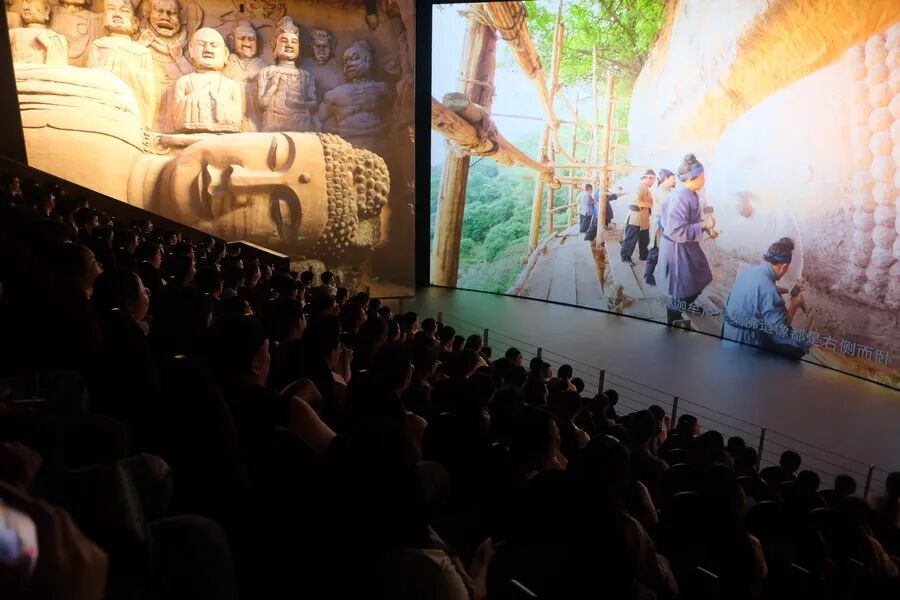 “游客不仅能够近距离观赏精美的石窟艺术,还能亲手‘修复’风化造像、与千年前的造像‘互动’。”安岳石窟数字展示中心负责人介绍,特别是Boxfilm沉浸式影院与3D 8K球幕影院,让唐宋风吹进现实,让匠心穿越时空。开放至今,中心已接待游客超15.8万人次。