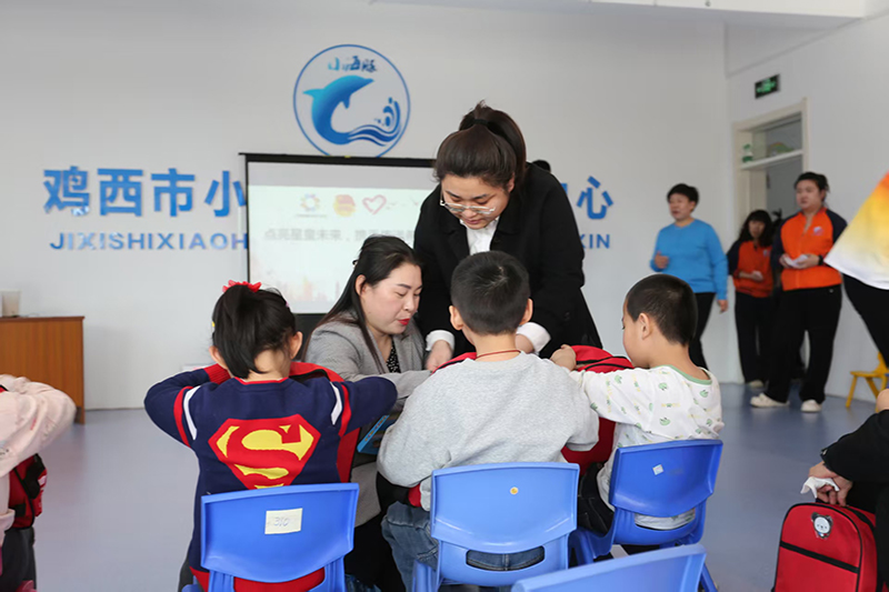 共青团鸡西市委员会、市青年志愿者协会到鸡西市小海豚启智培训中心为孤独症儿童送温暖。鸡西市青年志愿者协会供图