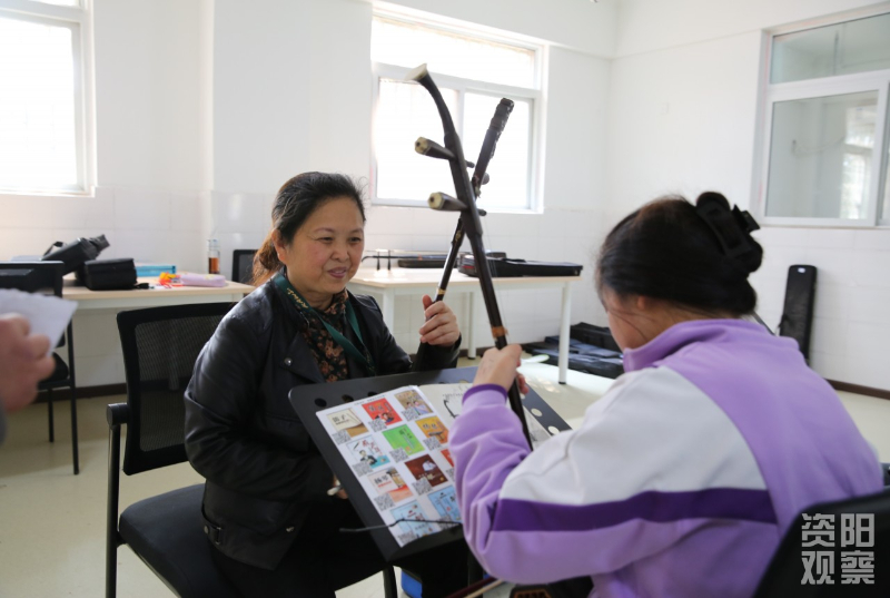 如今的李月莉,在老年大学任教时,经常带领老年学生排练《光明行》,让老人们在旋律中收获快乐。而特殊学生们的成长,更成为她退休生活最珍贵的馈赠。曾经的家庭困难学生小峰以二胡特长生身份考入四川文化传媒职业学院,放假还经常回工作室帮忙;罗明亮等学生纷纷走上自立之路,还会回来教新学员,这份传承让她格外欣慰。