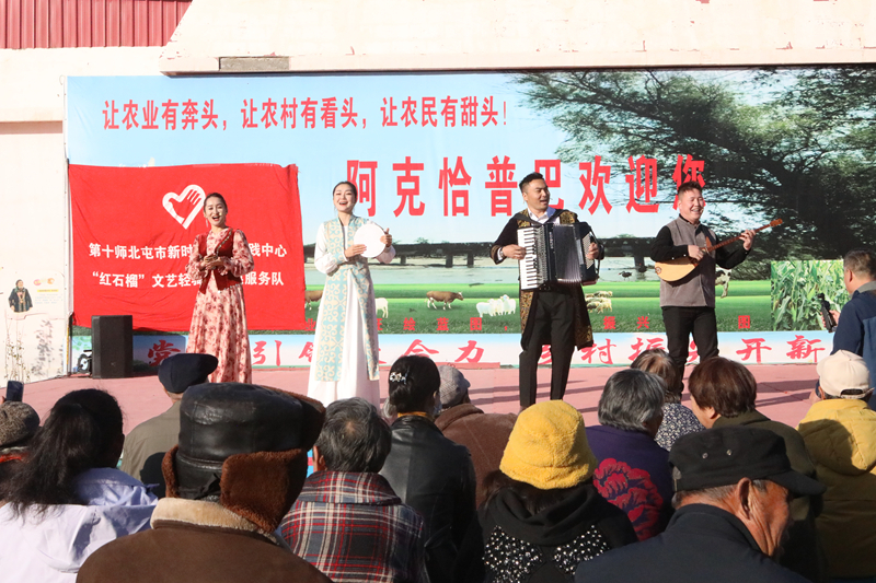 第十师歌舞剧团“红石榴”文艺轻骑兵志愿服务队定位于“小队伍、大能量”,将舞台搭建在田间地头、边防哨所,以群众喜闻乐见的艺术形式向各族群众送去党的好政策、宣传身边的好人好事,让各族群众“看得见、听得到、参与得了”,在家门口就能享受“文化盛宴”。